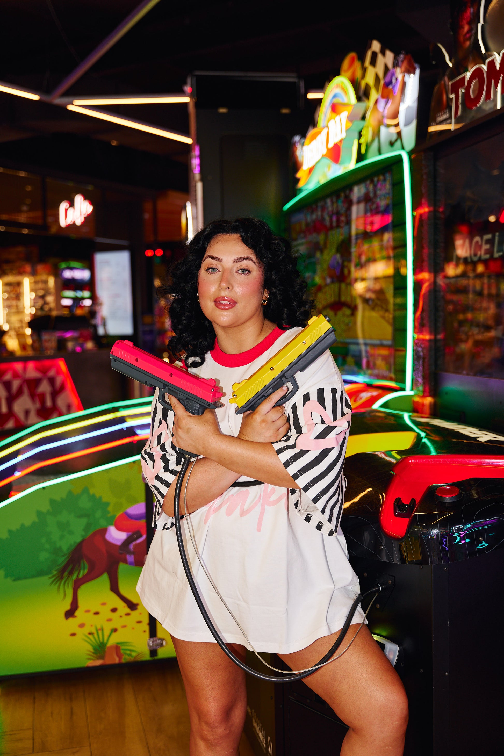 Brittany wears size M, 165cm and size 12-14.
