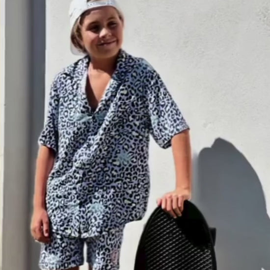 The Weekend Shorts will be your little ones new go to easy wear short! Designed in our custom lilac leopard print! Black elastic waist for extra comfort with an external black drawcord! These will have heads turning, we promise.